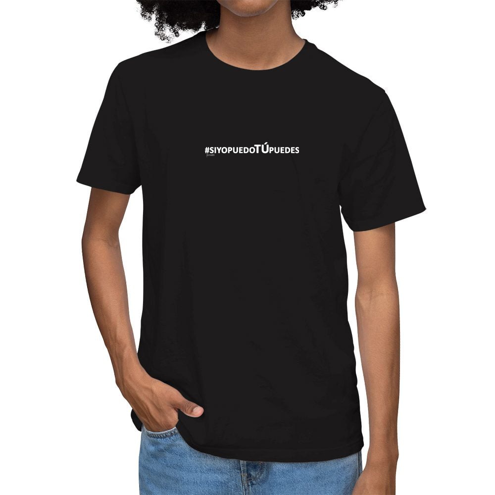 Camiseta técnica de manga corta ranglán de color negro y con texto SI YO PUEDO, TU PUEDES en línea. Confeccionada por Roly en poliéster 100%, con tejido waffle interlock y 135 g/m². Es transpirable, ligera y elástica, la mejor compañera para tus entrenamientos. Gracias a la tecnología DRY CONTROL mantiene tu cuerpo seco y libre de humedad. Además, el tejido te protege del sol, por lo que es perfecta para hacer deporte al aire libre incluso en verano. Y por si fuera poco, la manga ranglán se caracteriza por su extensión en una sola pieza desde el cuello, cubriendo el hombro y dejando una costura desde la sisa hasta la clavícula, lo que proporciona una mayor libertad de movimiento a la hora de hacer actividad física de todo tipo de intensidad. Las mangas además tienen paneles inferiores, para protegerte de rozaduras y evitar desgarros en la prenda.